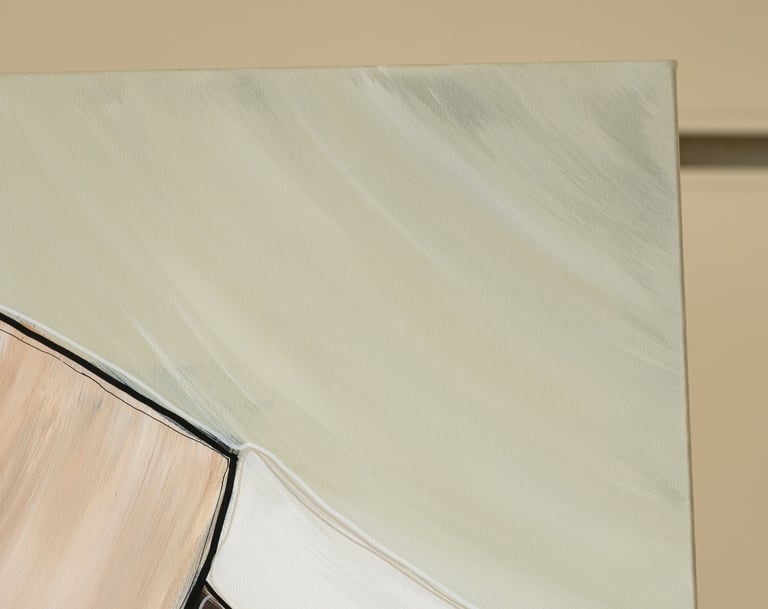 This painting invites the viewer to engage with its abstract form, allowing them to interpret
