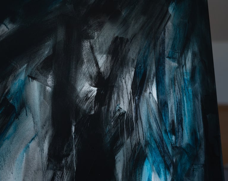 No.89 abstract painting is a unique accent in the modern interior. It can inspire you to incorporate the sapphire blue and dark tones into your home decor.