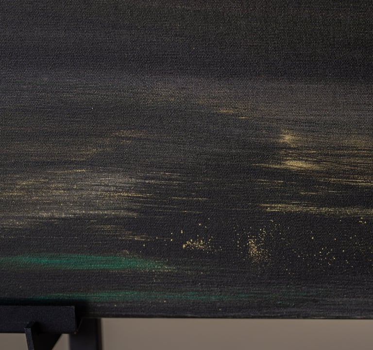 No.97 abstract landscape painting is a unique accent in the modern interior. It can inspire you to feel nature power in to your home. It is an experience of the senses through deep green and emerald color tones with accented gold strokes.