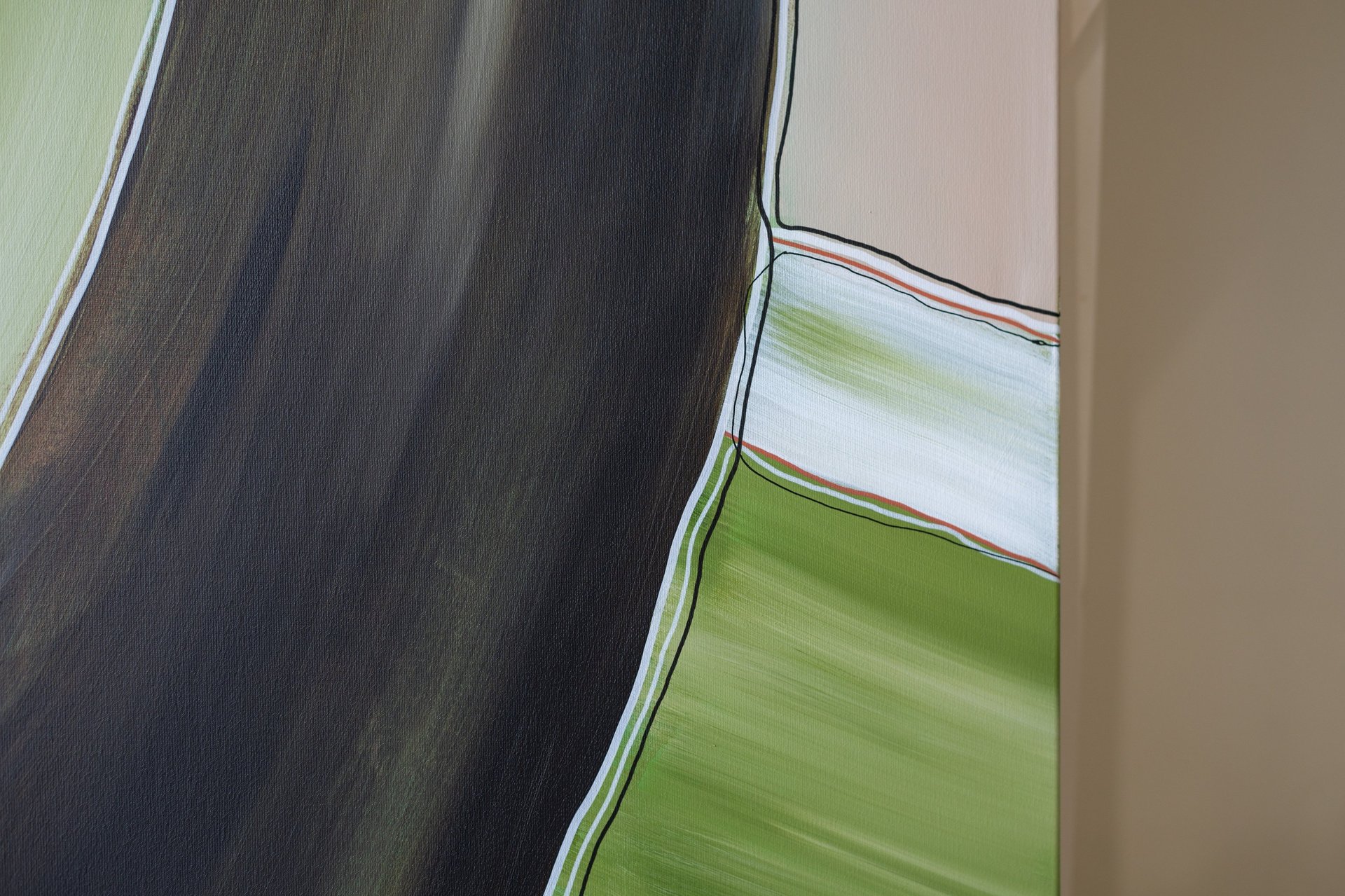 The combination of these earthy tones brings a natural and organic feel to the artwork. Meandering lines gracefully intertwine, adding depth and movement to the composition.