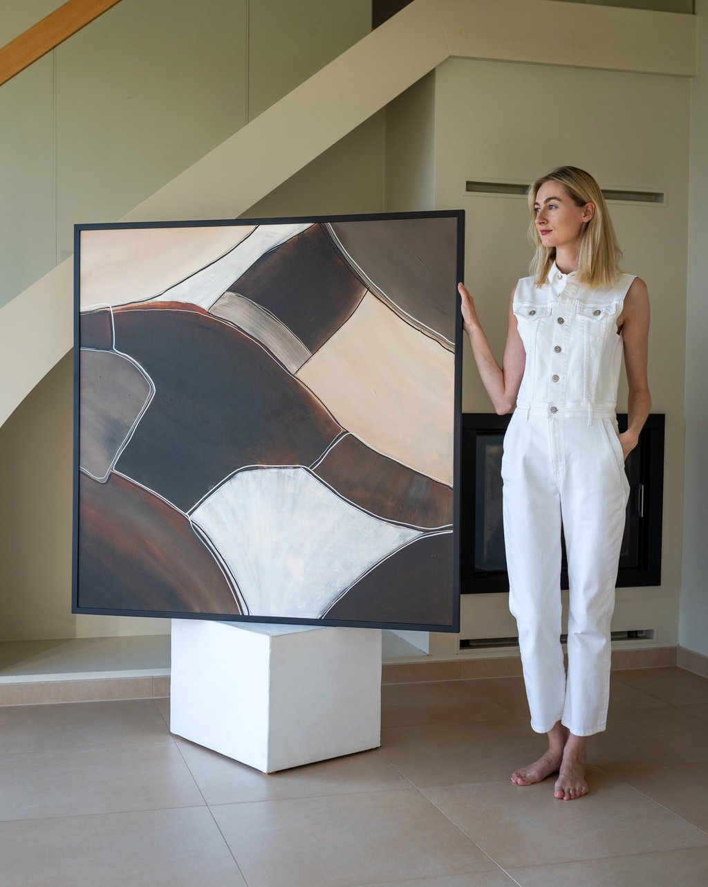No.99 abstract painting in warm brown tones and lines is a visually striking piece. The combination of warm browns creates a sense of warmth and depth, while the flowing lines add a touch of movement and energy to the artwork.