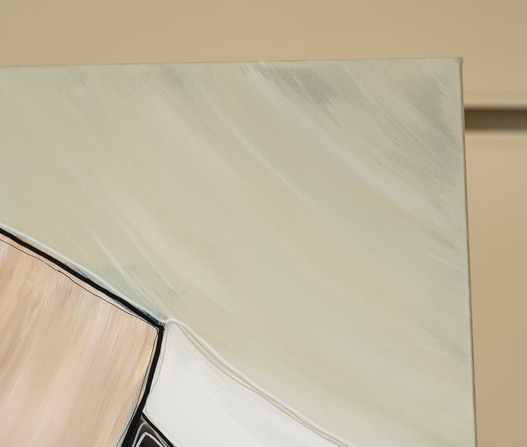 This painting invites the viewer to engage with its abstract form, allowing them to interpret