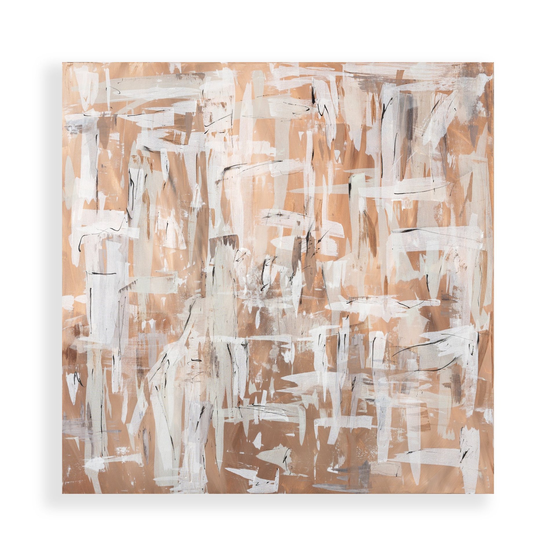 No.111 abstract painting is a stunning display of warm brown and sand tones, complemented by bursts of white and dynamic brush strokes.