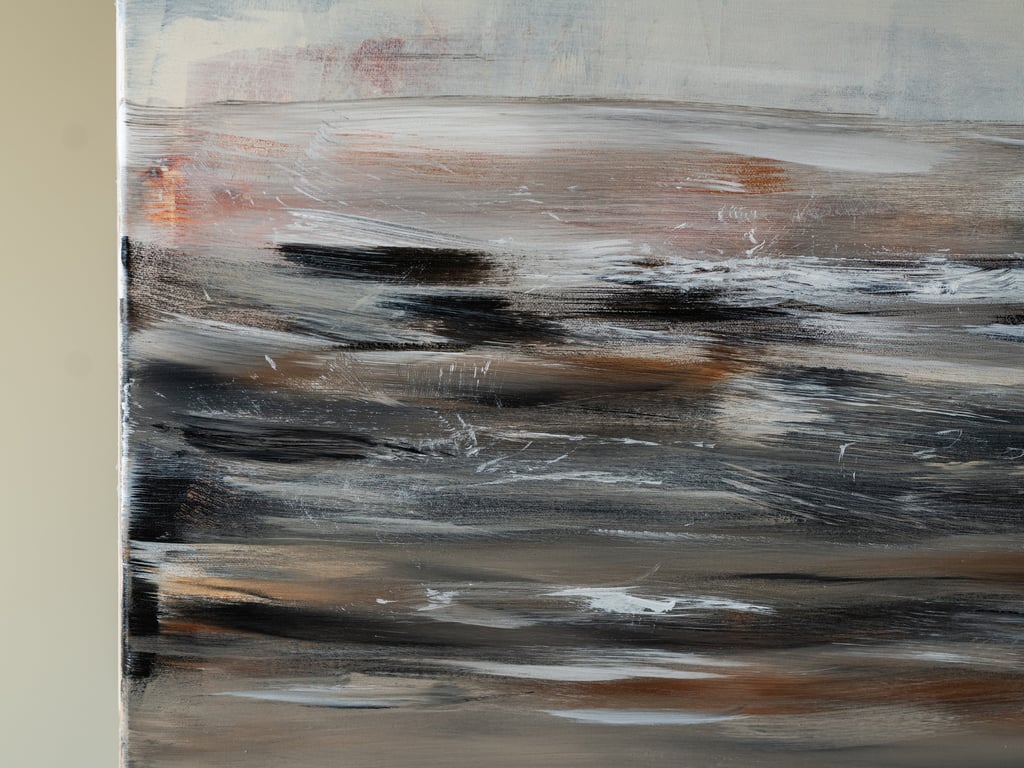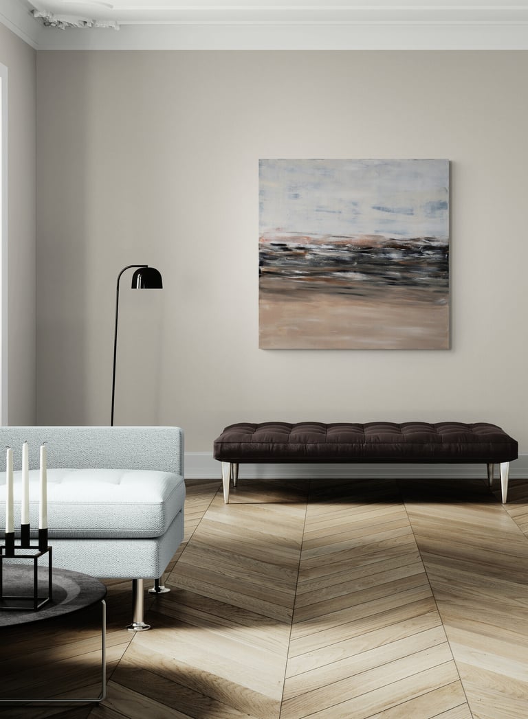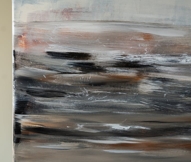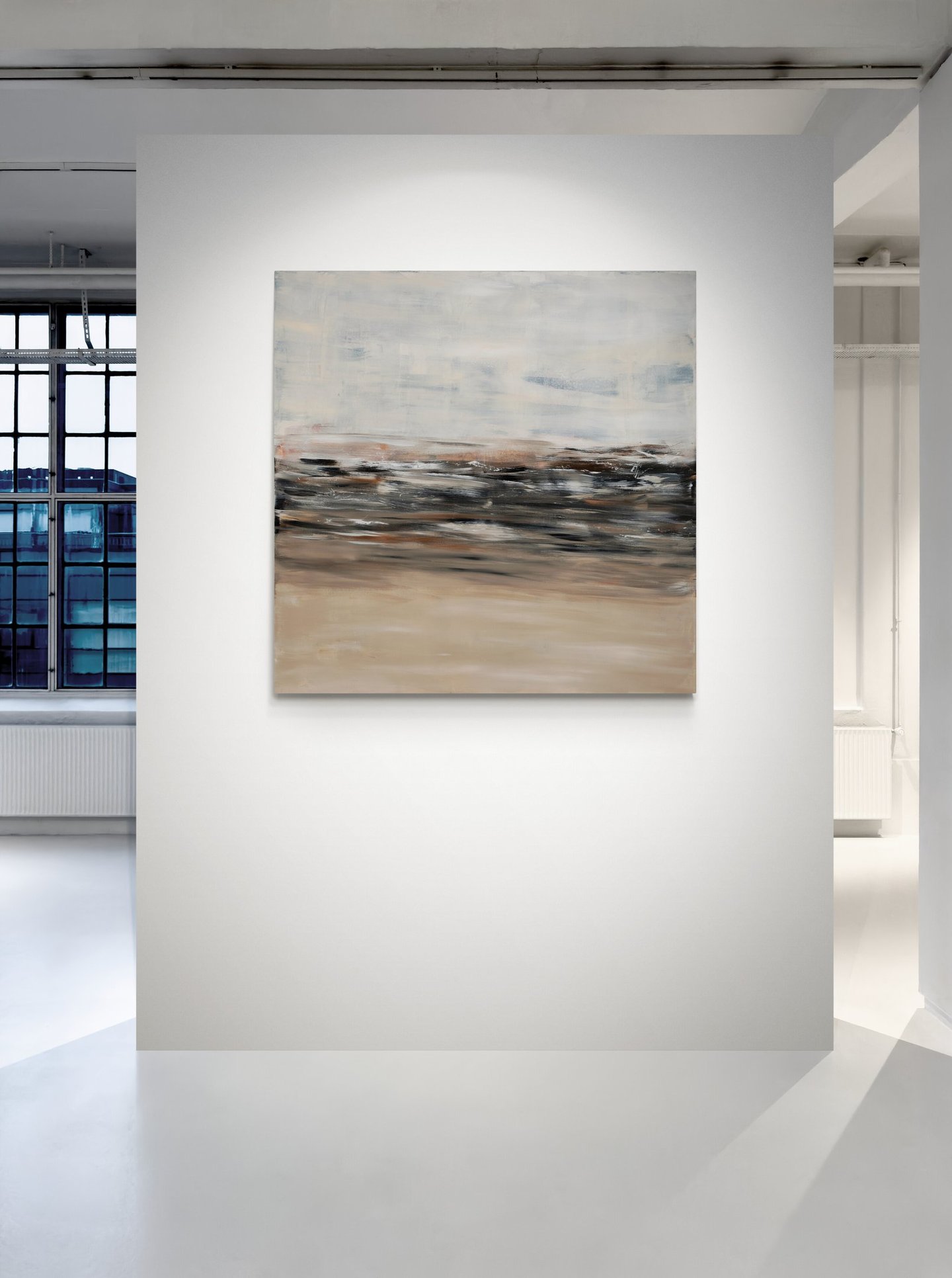 No.113 abstract painting is a serene and tranquil piece, with warm brown and sand tones dominating the canvas. The artist has incorporated hints of blue tones, adding depth and contrast to the overall composition.