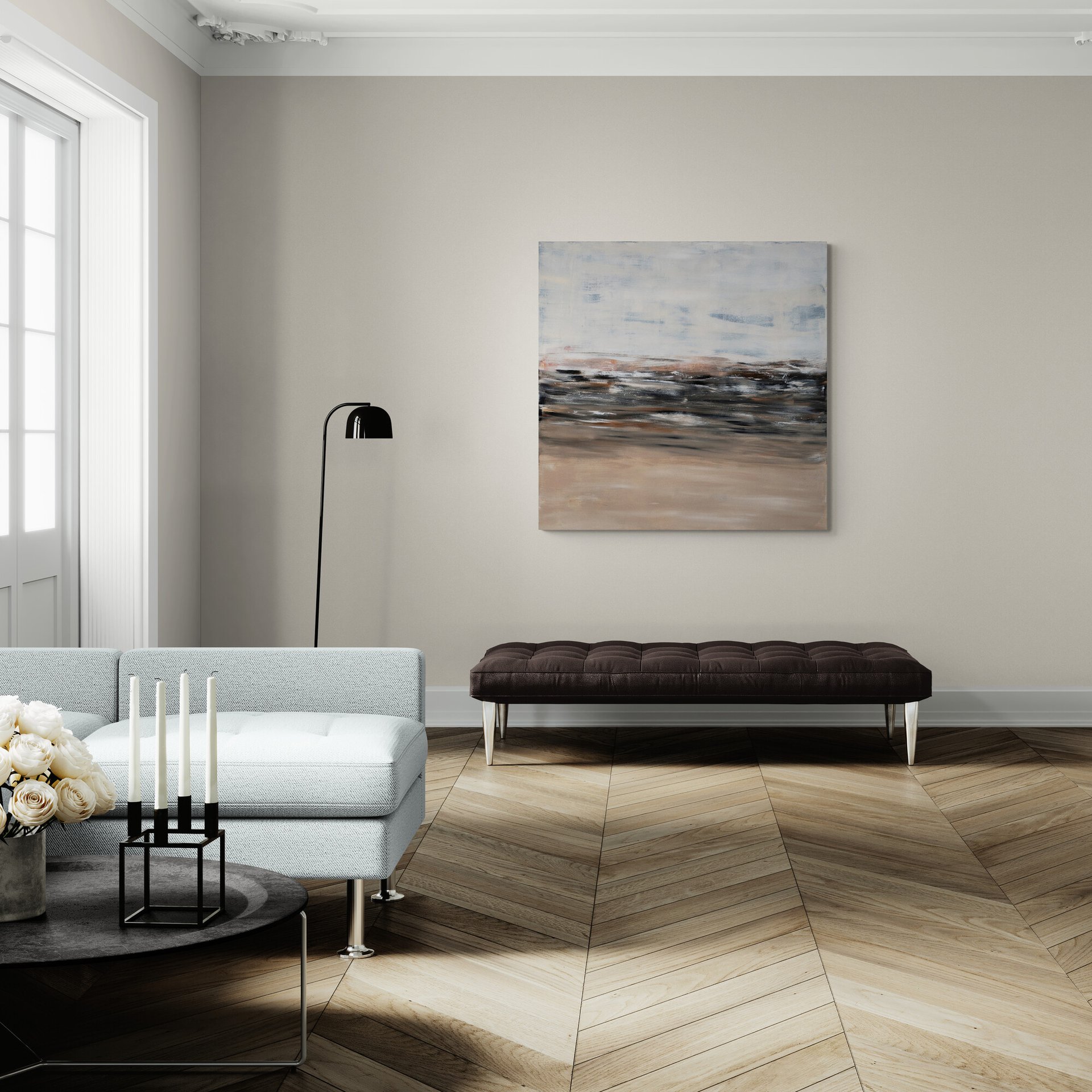 The painting exudes a sense of calmness, inviting the viewer to immerse themselves in its soft and gentle ambiance. The abstract landscape is beautifully depicted, with forms and shapes that evoke a feeling of tranquility and serenity.