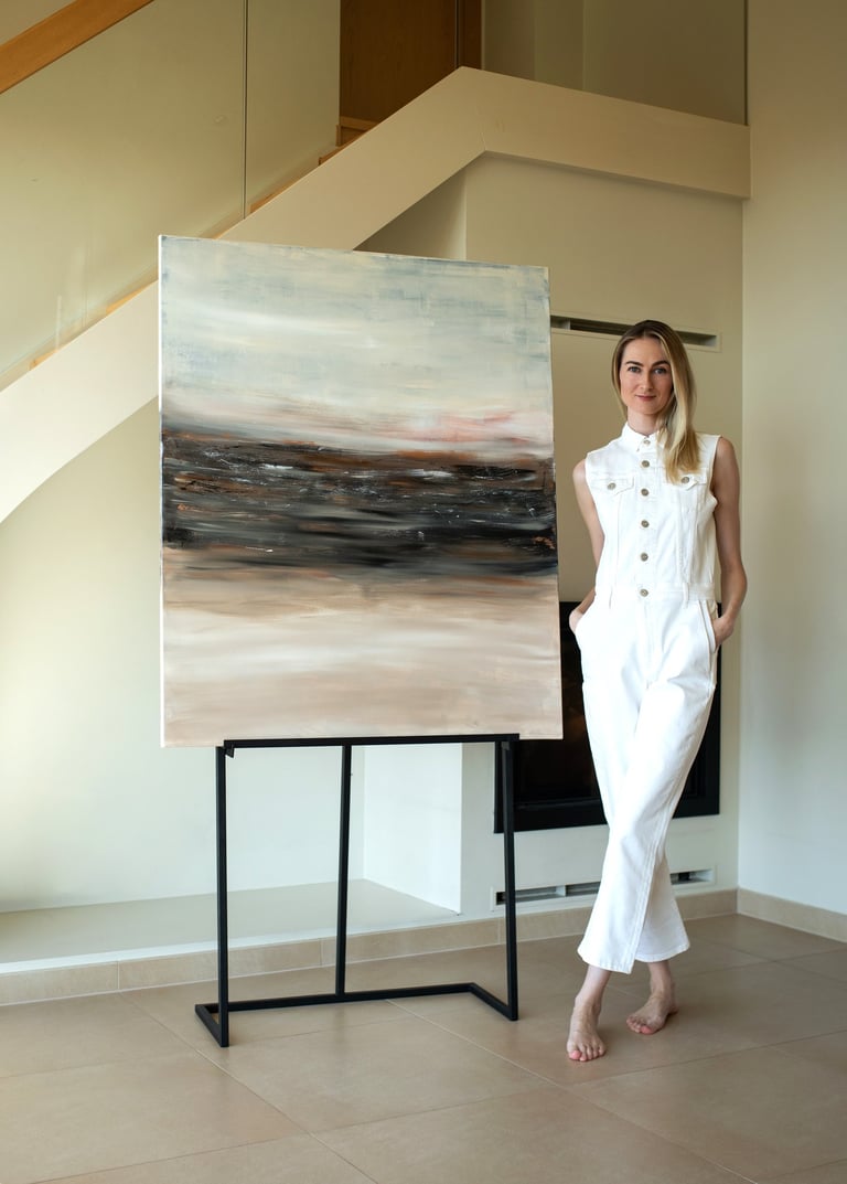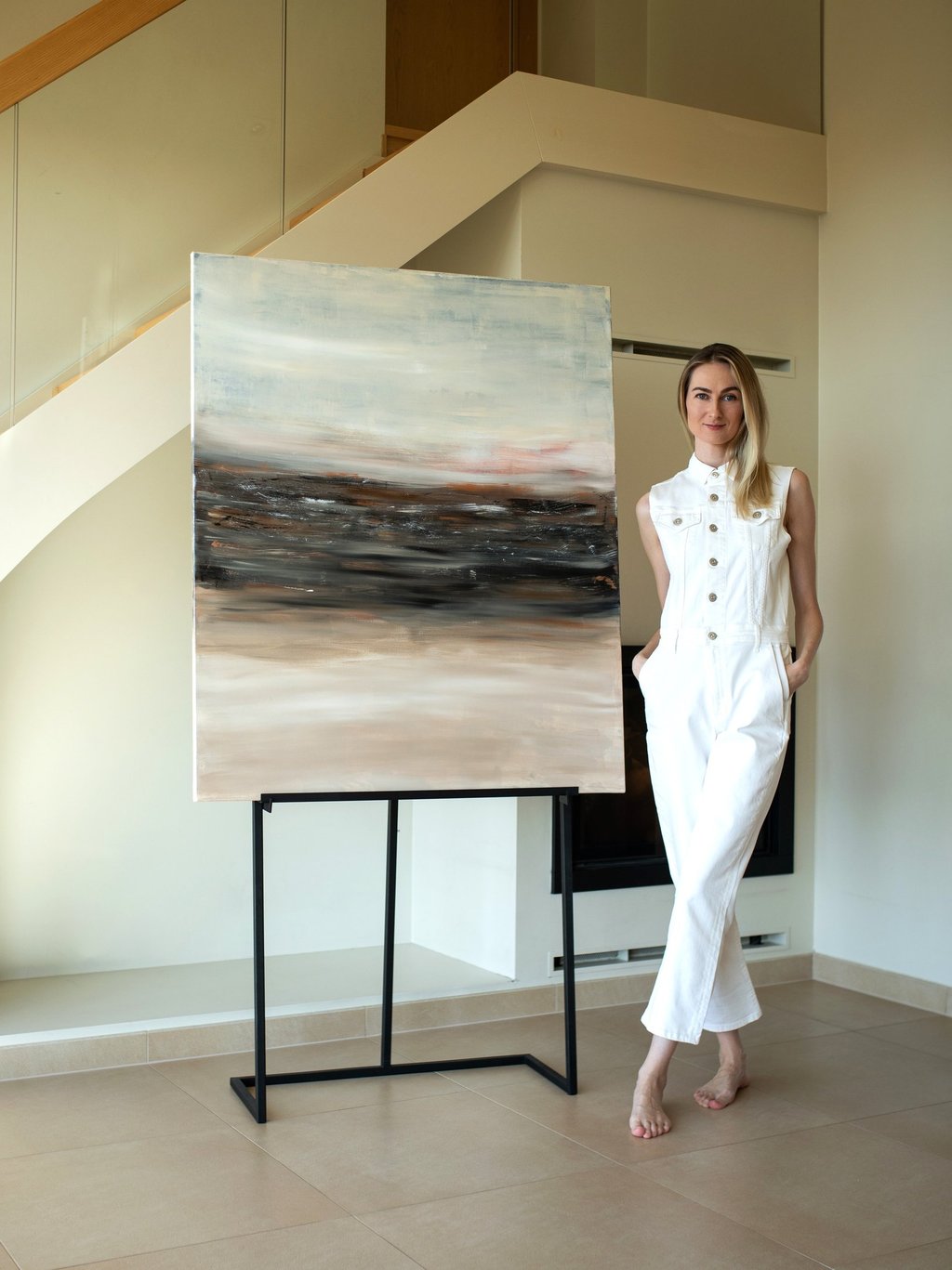 The painting exudes a sense of calmness, inviting the viewer to immerse themselves in its soft and gentle ambiance. The abstract landscape is beautifully depicted, with forms and shapes that evoke a feeling of tranquility and serenity.