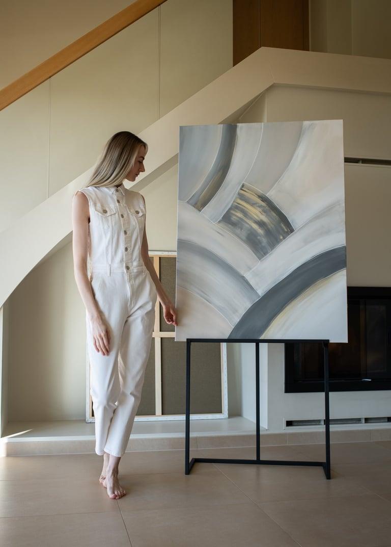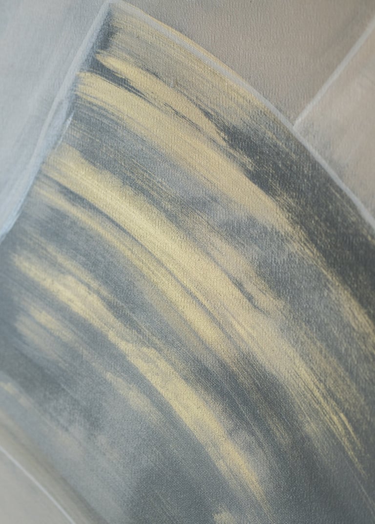 The warm sand tones evoke a sense of tranquility and warmth, while the cool grey tones bring a hint of serenity and depth to the artwork. The overall composition exudes a calm and serene atmosphere, inviting the viewer to immerse themselves in its beauty.