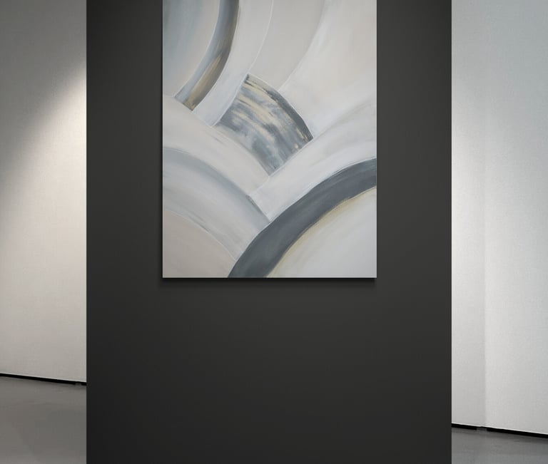 No.115 abstract painting showcases a harmonious blend of warm sand tones and cool grey tones, creating a soothing and soft appearance.