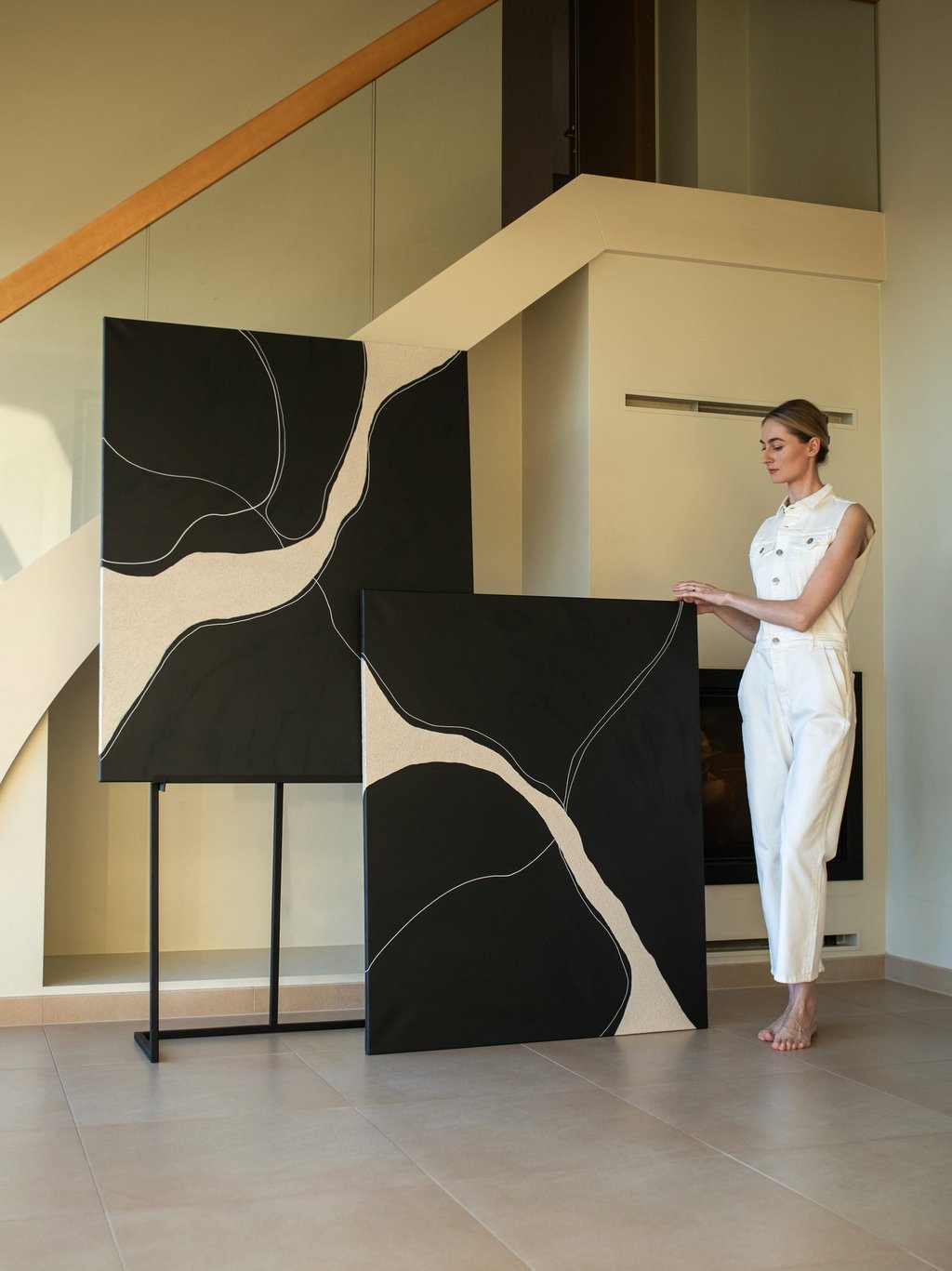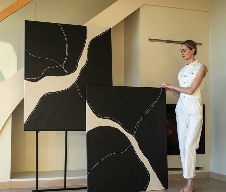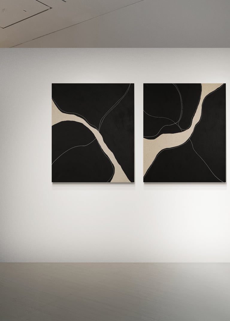 Two complementary abstract paintings that can be hung individually or combined