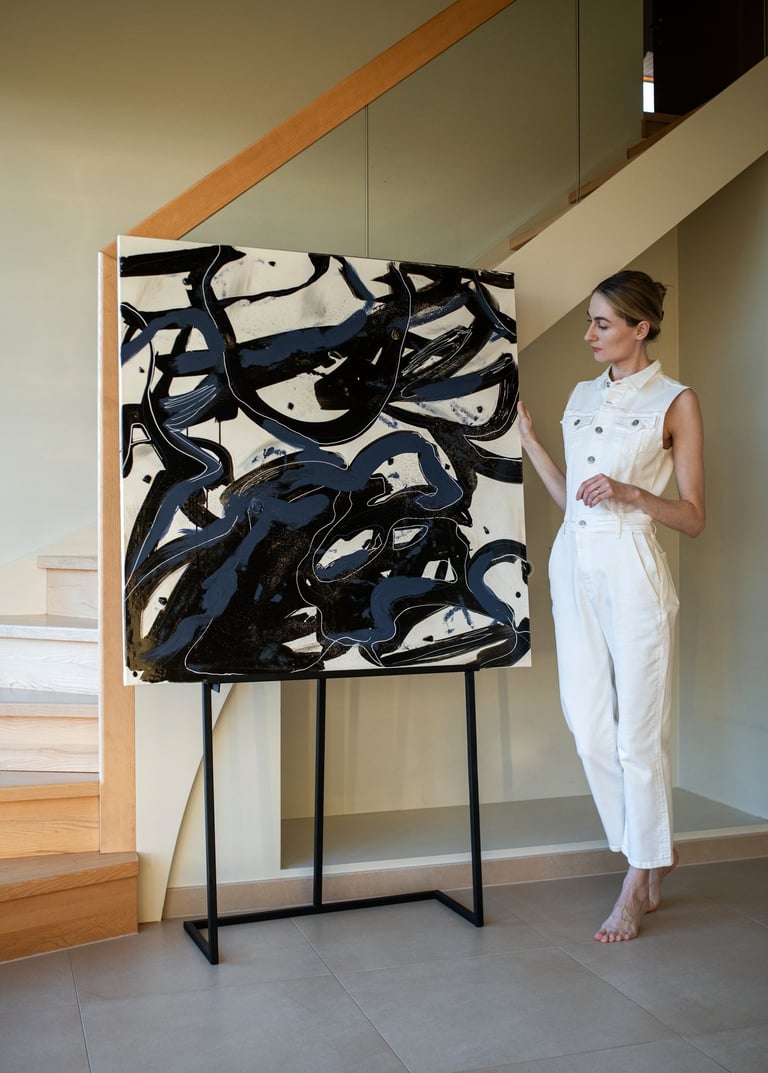 The painting exudes a modern and expressive look, capturing the viewer's attention with its bold color palette and intricate details