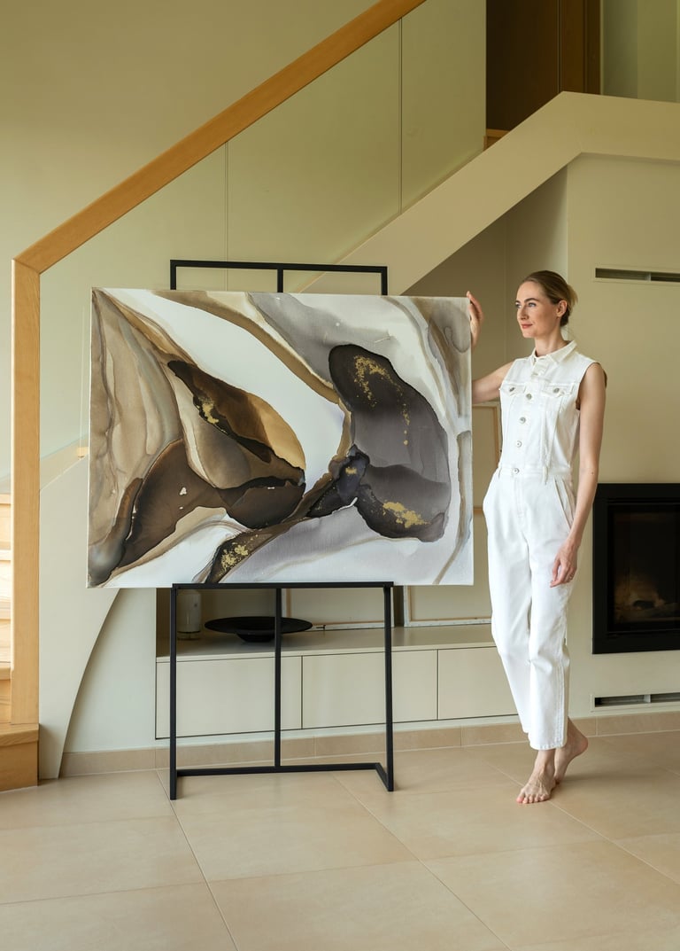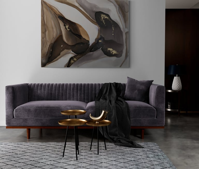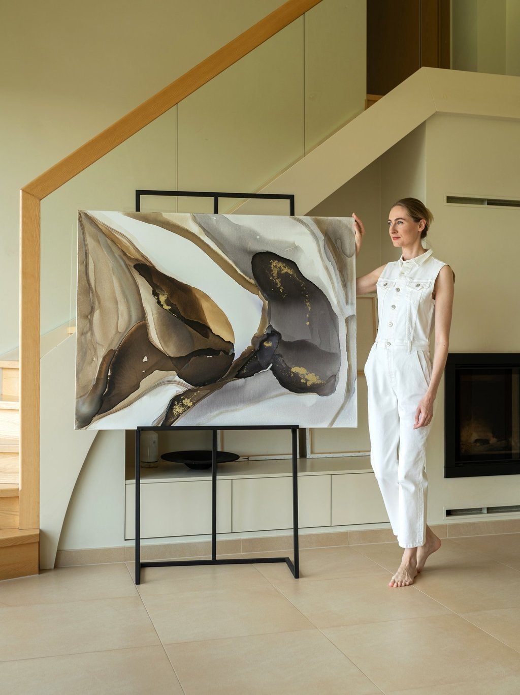 No.128 abstract painting radiates a quiet sense of movement — warm, earthy, luxurious, and balanced. Inspired by the depth of the earth, it evokes the textures of mineral veins and underground richness. The palette of warm earth tones flows naturally into contemporary interiors, becoming a captivating focal point that adds warmth, character, and distinction.