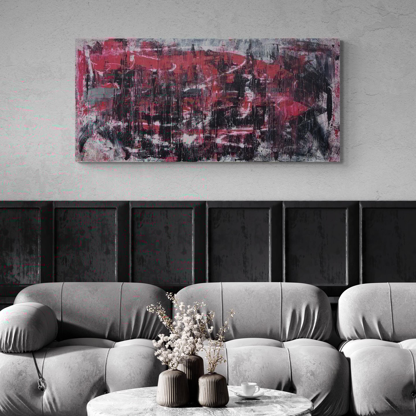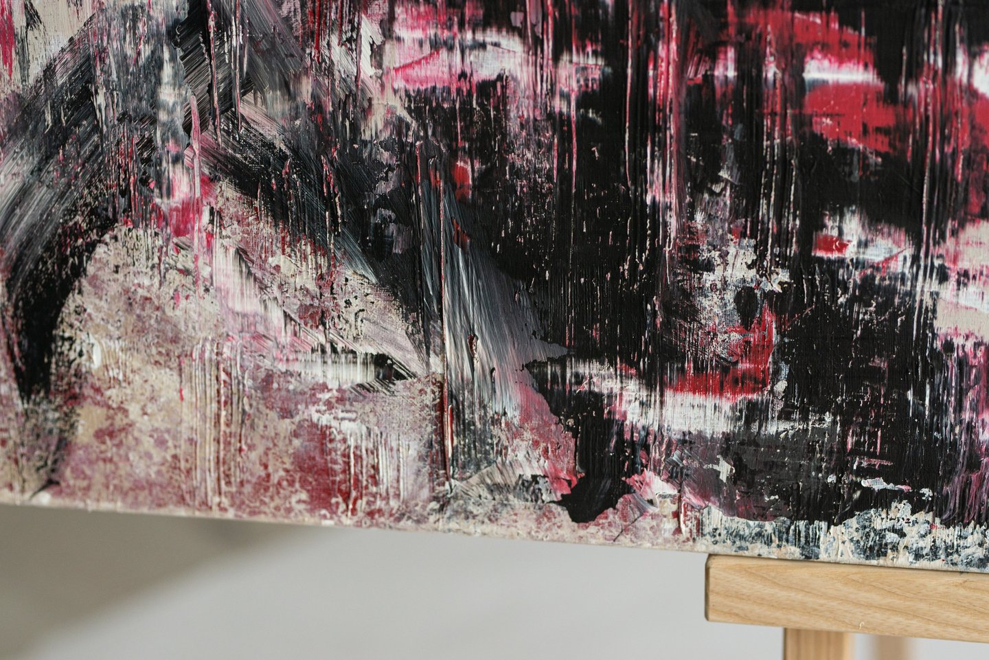 No.62 abstract painting exudes a captivating blend of texture and vibrant, expressive strokes that bring life to any space. With its unique play of colors and bold brushwork, this piece is a perfect fit for a loft-style interior.