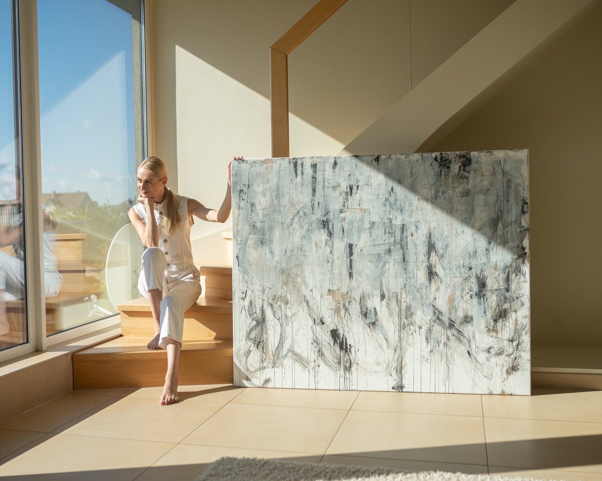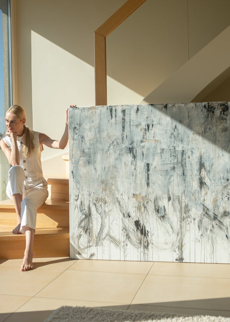 No.88 abstract painting is a unique accent in the modern interior. It can inspire you to incorporate the calm tones into your home decor.