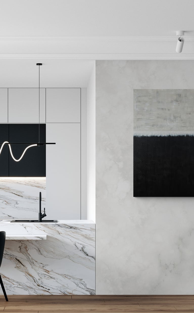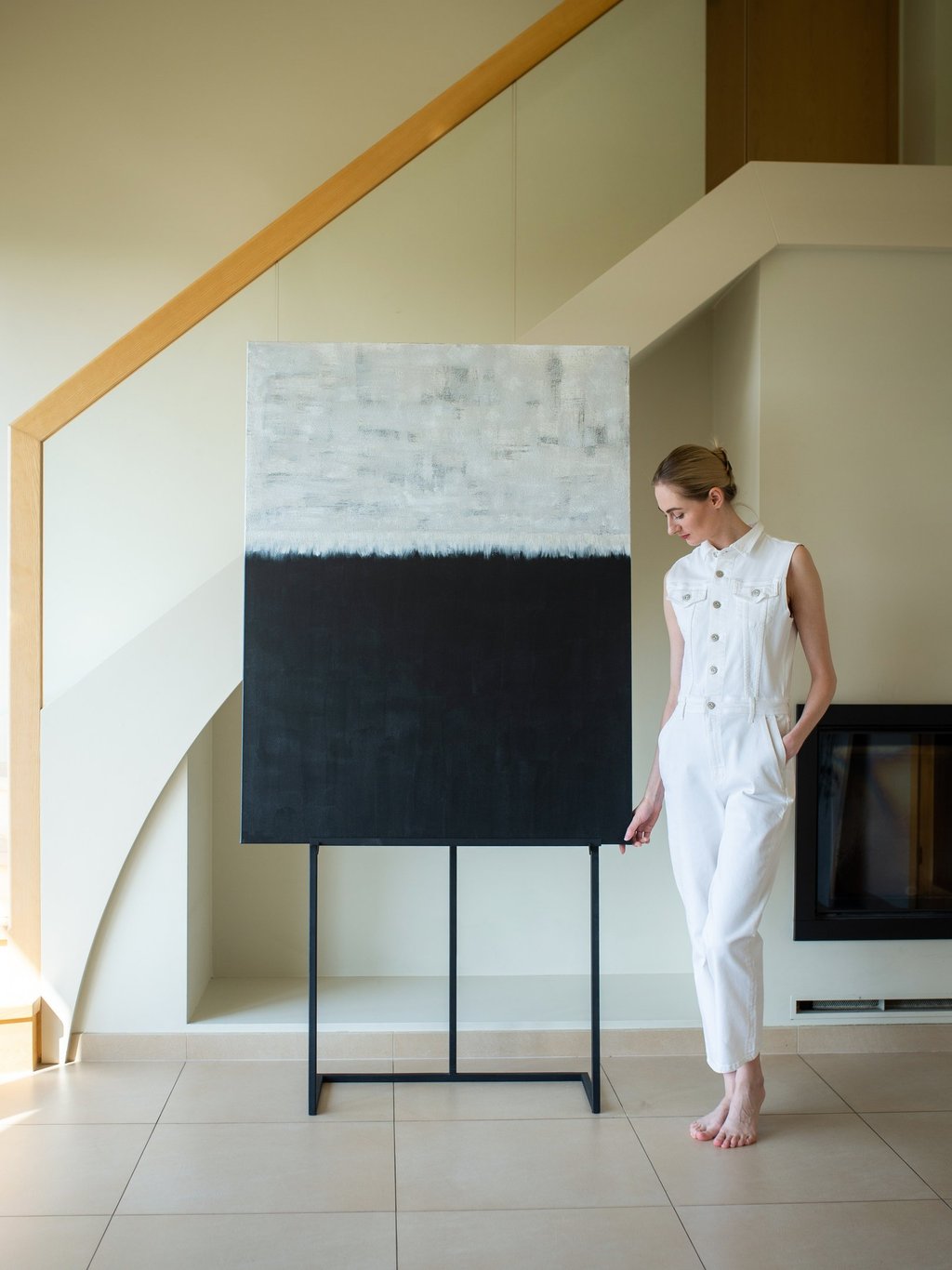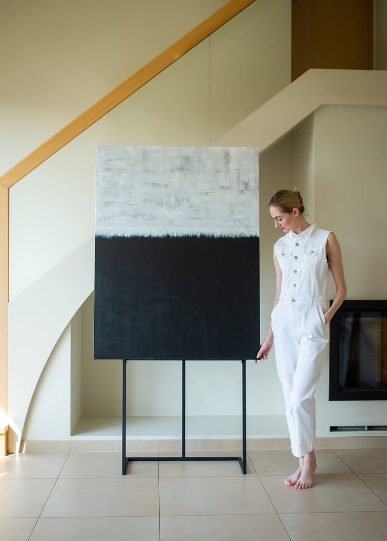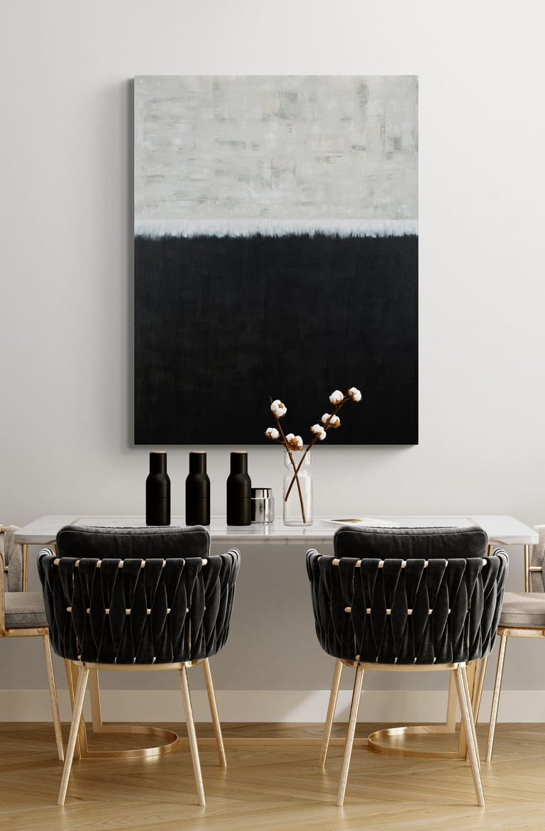 No.91 abstract painting is a unique accent in the modern interior. It can inspire you to incorporate the dark tones and feel elegant into your home decor.