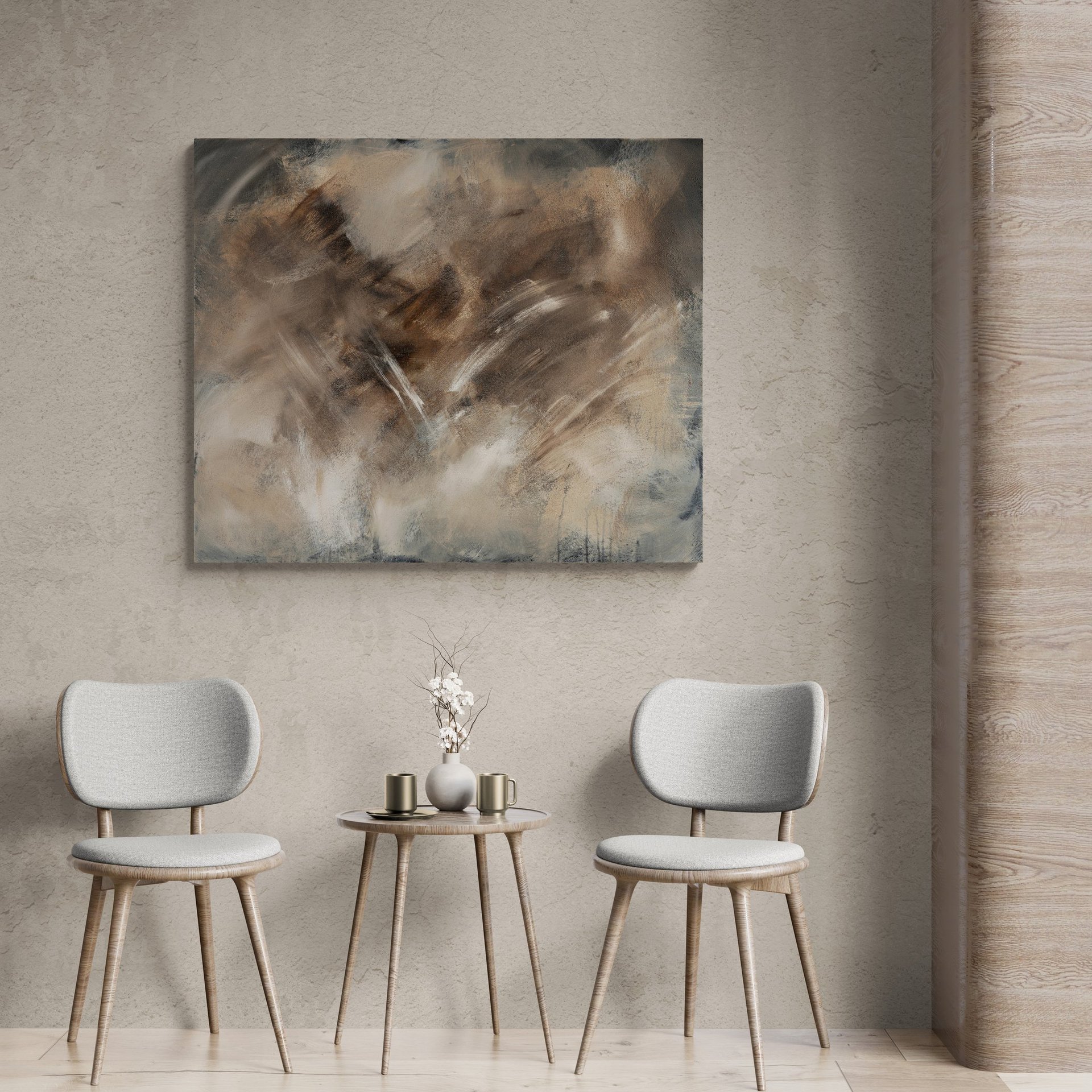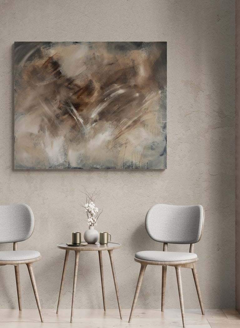 No.96 abstract painting is a unique accent in the modern interior. It can inspire you to incorporate warm earthy tones and dynamic feeling into your home decor.