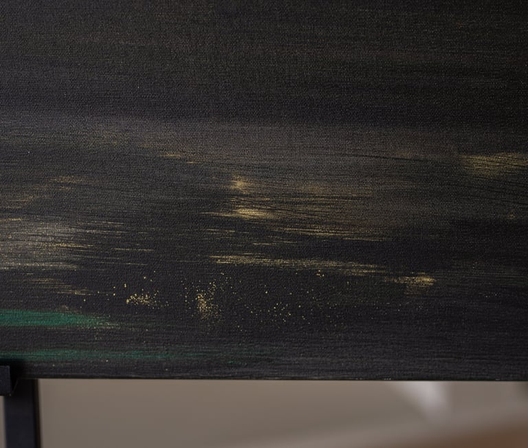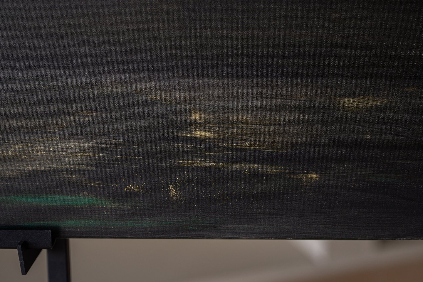 No.97 abstract landscape painting is a unique accent in the modern interior. It can inspire you to feel nature power in to your home. It is an experience of the senses through deep green and emerald color tones with accented gold strokes.