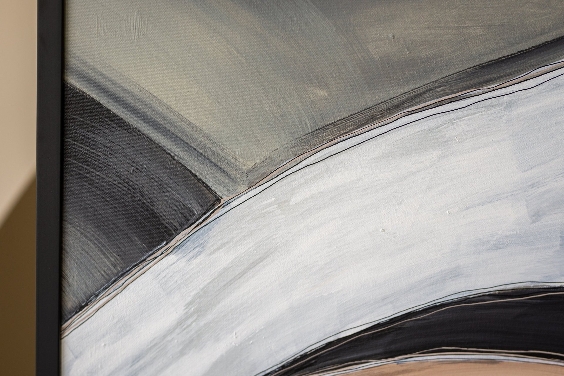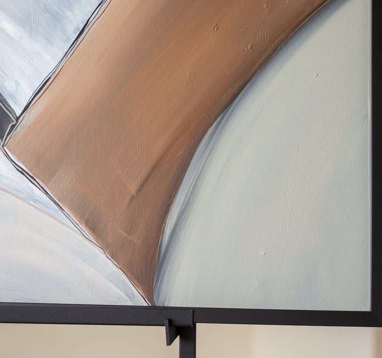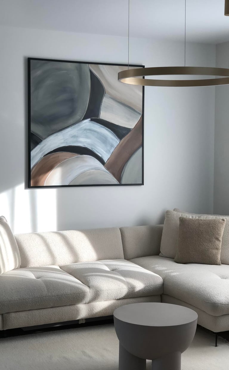 No.99 abstract painting is a unique accent in the modern interior. It can inspire you to incorporate the calm earth tones and elegant black accents into your home decor.