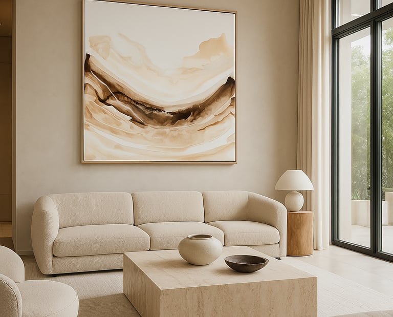 Painting entered my life as a necessity to express what interior elements alone could not—the deeper emotional layers, inner harmony, and calm that people seek not only in their surroundings but primarily within themselves. This shaped my artistic philosophy: not driven by fleeting trends or superficial effects, but by genuine presence—not through instant impressions, but slow, intentional connection.